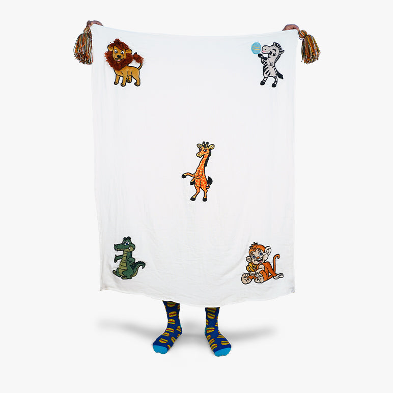 • Adorable hand-embroidered jungle friends that spark curiosity and smiles