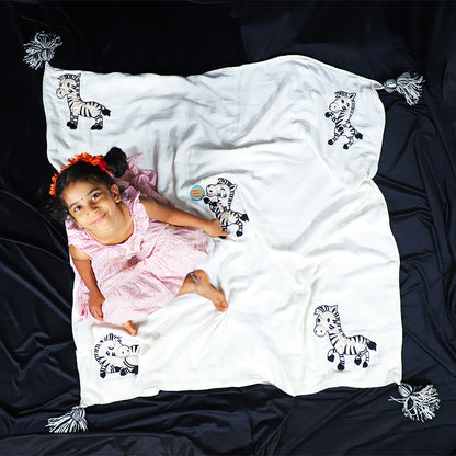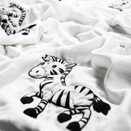 Wrap your little wildling in comfort and imagination. Crafted from six layers of ultra-soft organic bamboo cotton, this embroidered baby blanket is breathable, gentle on delicate skin, and machine-washable for everyday ease. Designed to stay cozy from newborn snuggles to age 6.